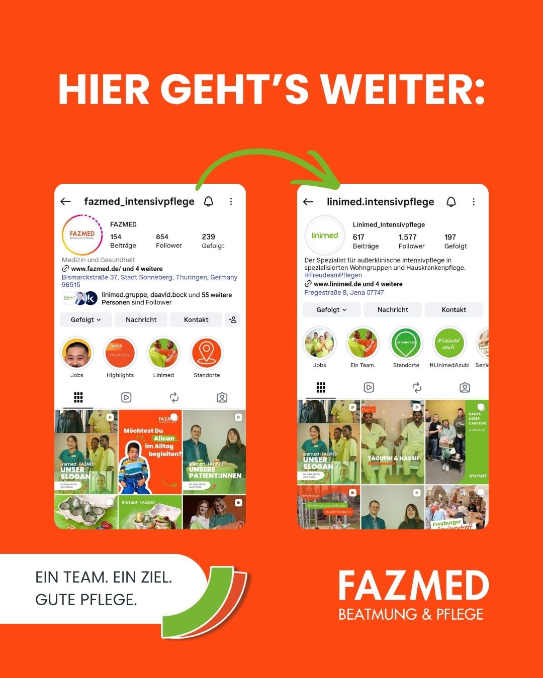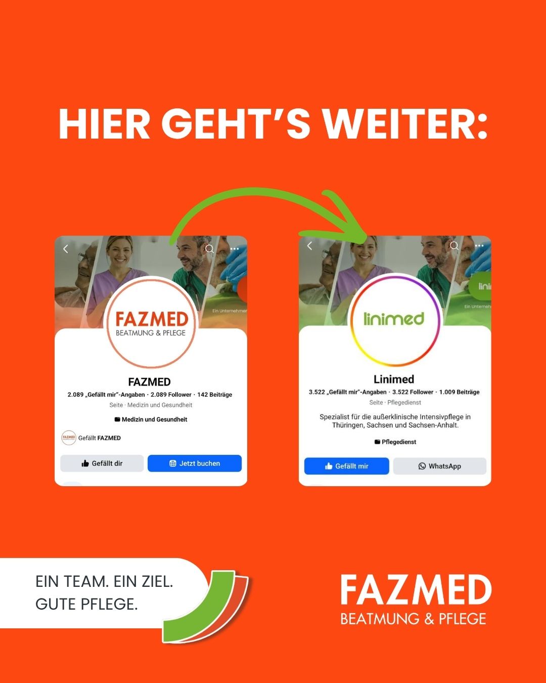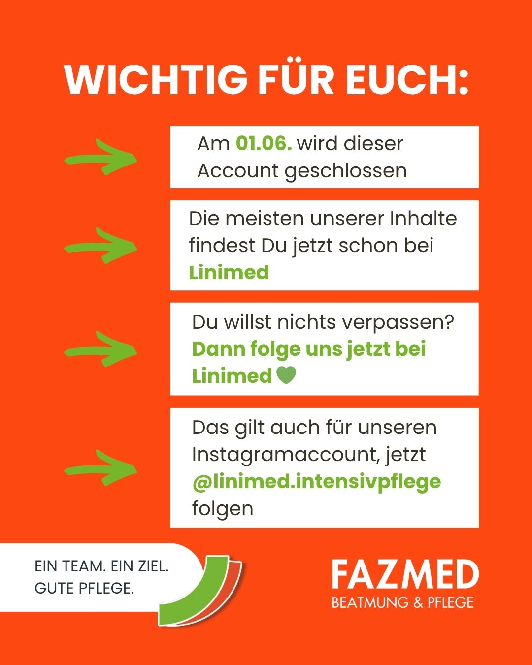 Im Zuge des Zusammenschlusses von FAZMED und Linimed zum 01.06.2026 werden unsere Social-Media-Aktivitäten künftig auf gemeinsamen Kanälen gebündelt.