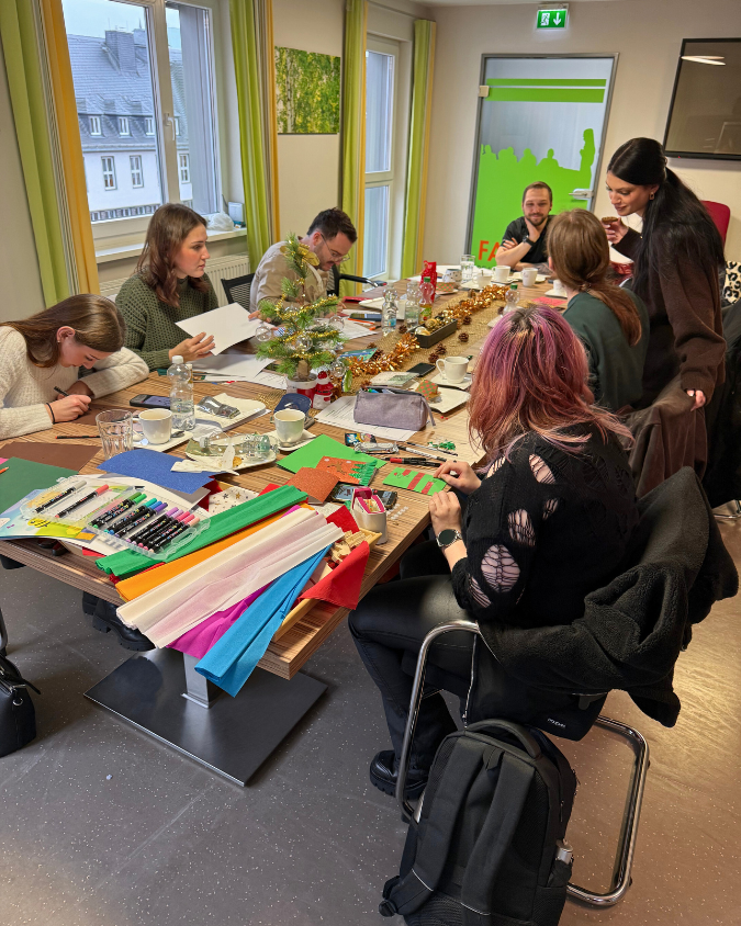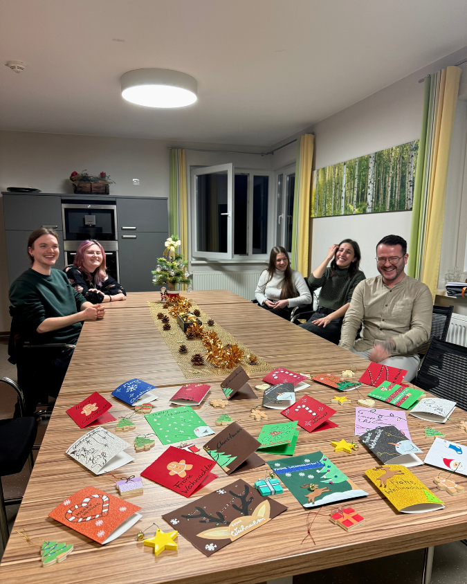 Ein besonderes Zeichen der Gemeinschaft setzten unsere Auszubildenden in Sonneberg. Im Rahmen ihrer Weihnachtsfeier bastelten sie gemeinsam Weihnachtskarten für unsere intensivpflegebedürftigen Klient:innen im außerklinischen Setting – eine persönliche Geste, die von Herzen kommt.