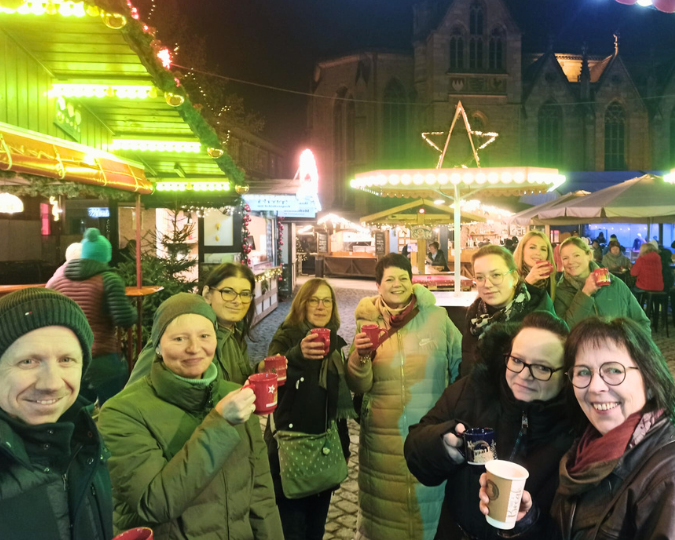 Auch außerhalb der WGs wurde die Vorweihnachtszeit gemeinsam erlebt. Die Weihnachtsfeier der WG Hildburghausen führte unsere Kolleg:innen nach Meiningen – mit einem Besuch des Weihnachtsmarkts und einem gemütlichen Ausklang im Henneberger Haus.